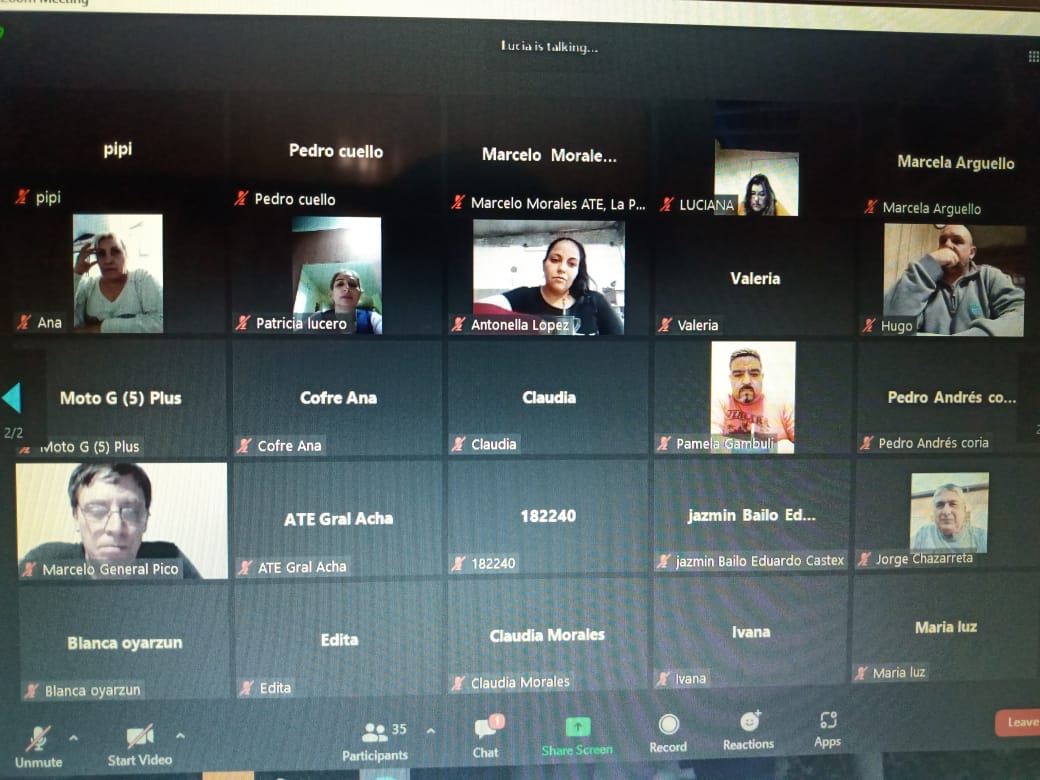 Con más de 50 participantes de toda la provincia se desarrollo de forma virtual la Asamblea provincial de Auxiliares de la Educación luego de la última reunión paritaria donde el ejecutivo no presento ninguna propuesta para el pase de los trabajadores y trabajadoras de la ley 2871 a la ley laboral 643. Un triunfo de la lucha es el pase a "Contrato Equiparado" de auxiliares monotributistas.